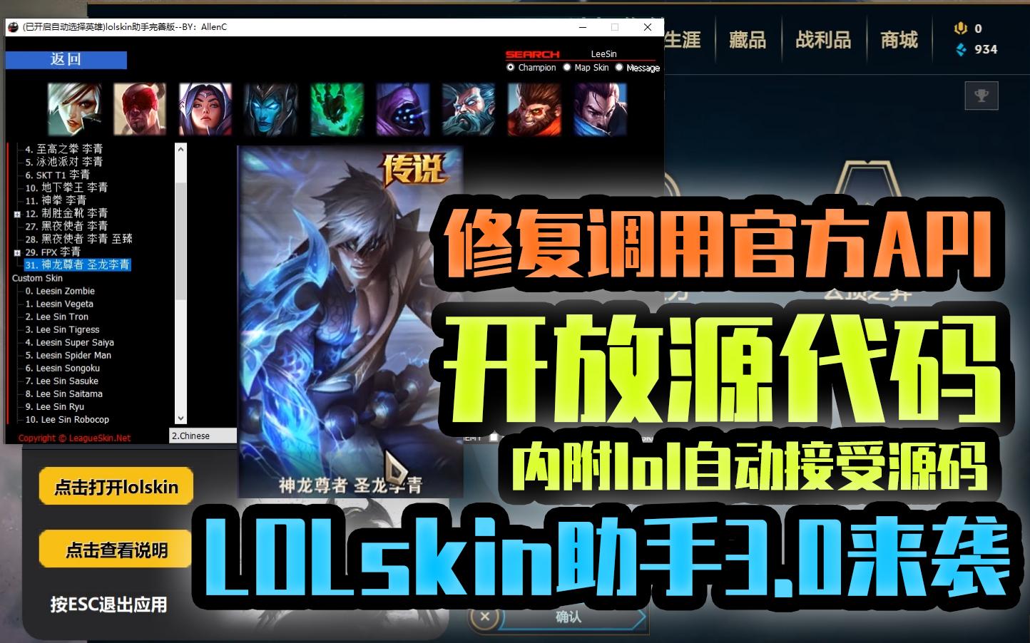 LOL辅助英雄联盟辅助·R3nzSkin换肤助手免费版 v14.11