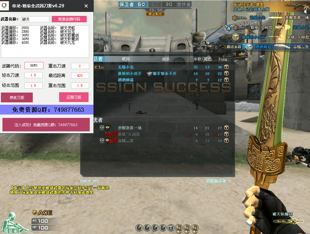 CF辅助穿越火线辅助东北挑战显敌狙击连发百倍加速多功能辅助破解